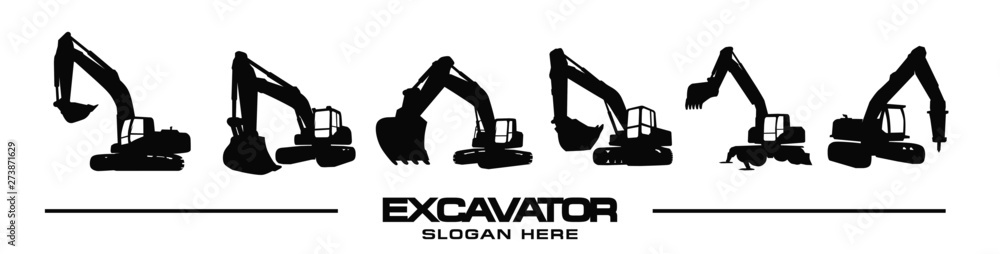 Excavator logo template vector. Heavy equipment logo vector for construction company. Creative excavator illustration for logo template.