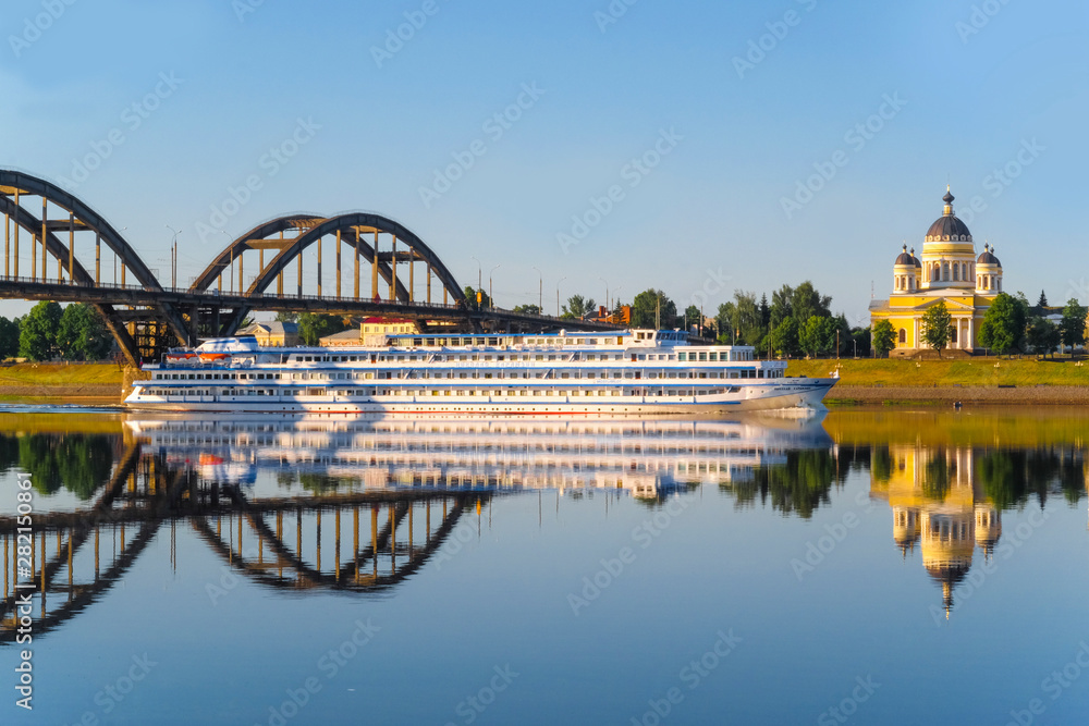 Tableau sur toile Rybinsk, Russia - June, 10, 2019: landscape with the image of a passenger ship o