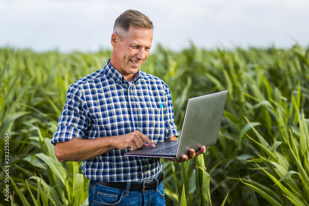 Tableau sur toile Smiley agronomist using a laptop