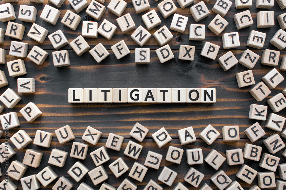 Tableau sur toile litigation - word from wooden blocks with letters, the process determining issu