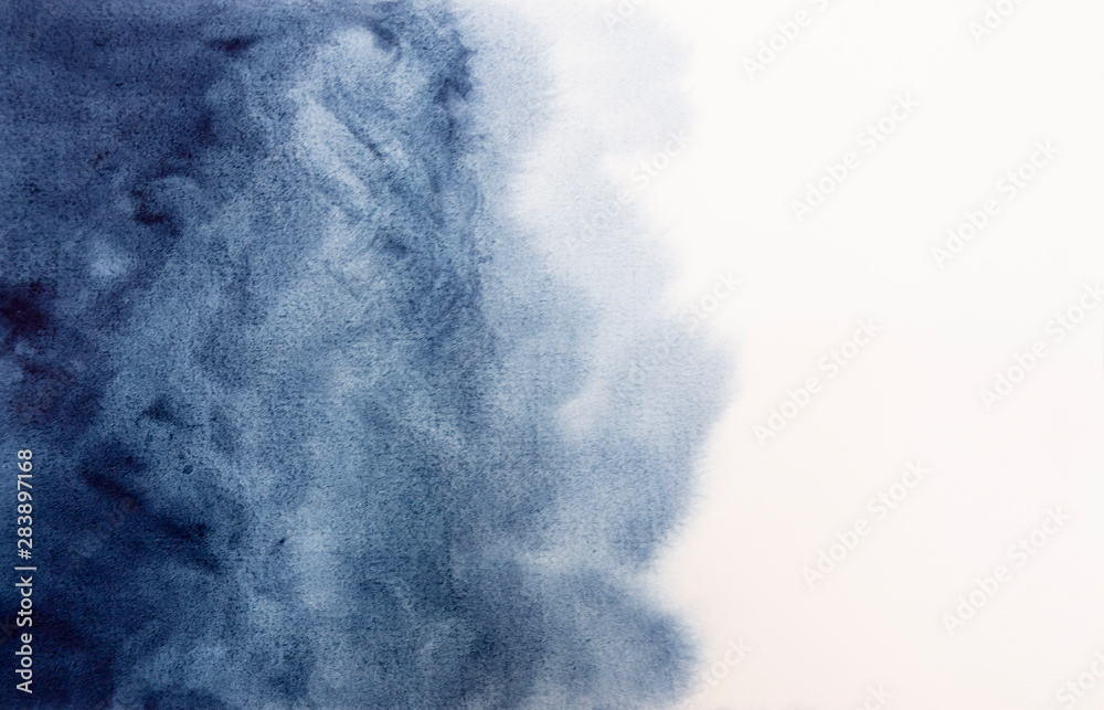 Tableau sur toile Hand drawn watercolor splash on paper art abstract indigo background illustratio