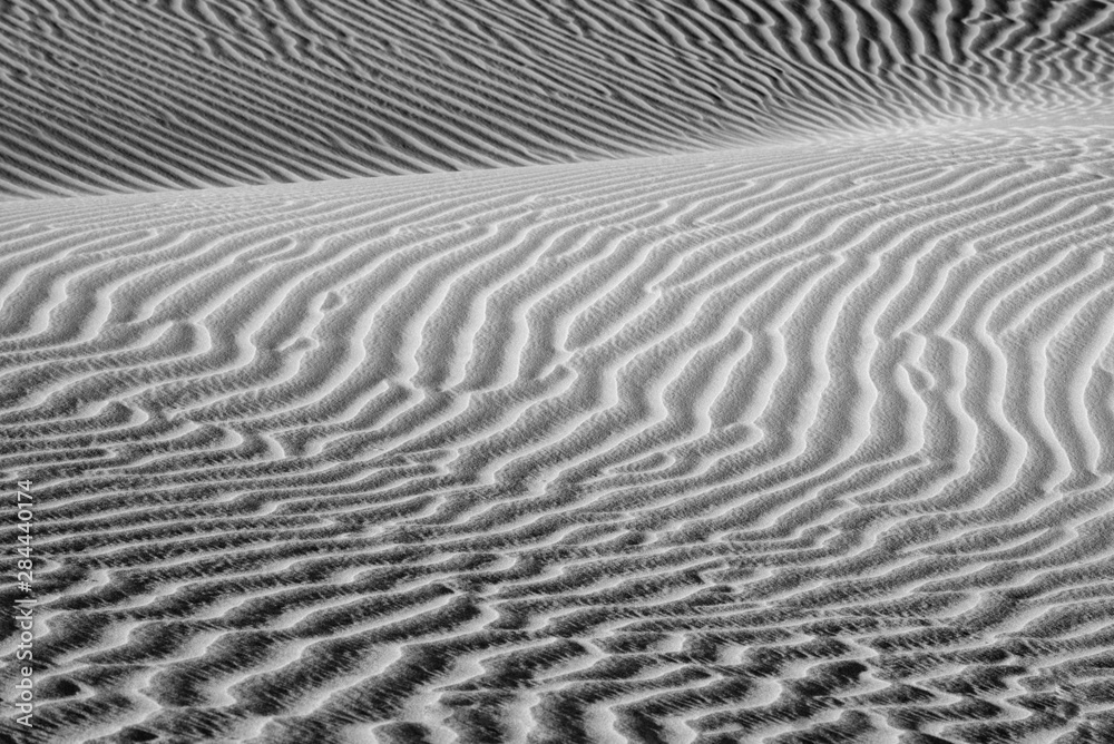 Tableau sur toile USA, California. Black and white image of windblown sand dune