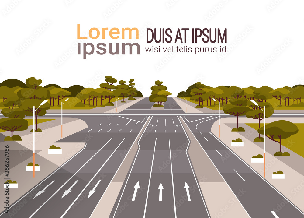 Tableau sur toile empty highway asphalt with road marking arrows traffic signs roadway with crossr