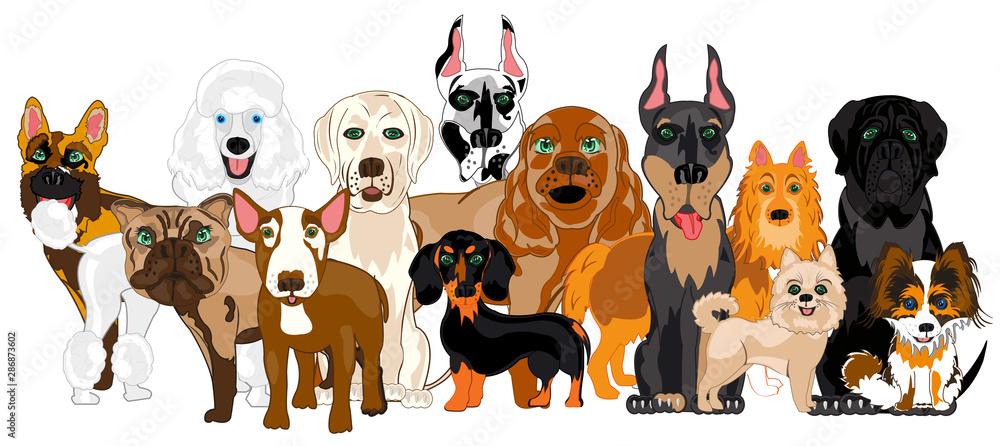 Tableau sur toile Vector illustration of the group of the dogs of the varied sorts