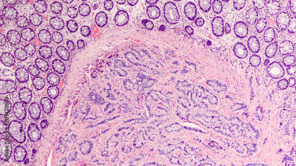 Tableau sur toile Photomicrographie d'une tumeur carcinoïde, un type de tumeur neuroendocrine (TNE), qui s'est présentée comme un polype du côlon lors d'une coloscopie de routine