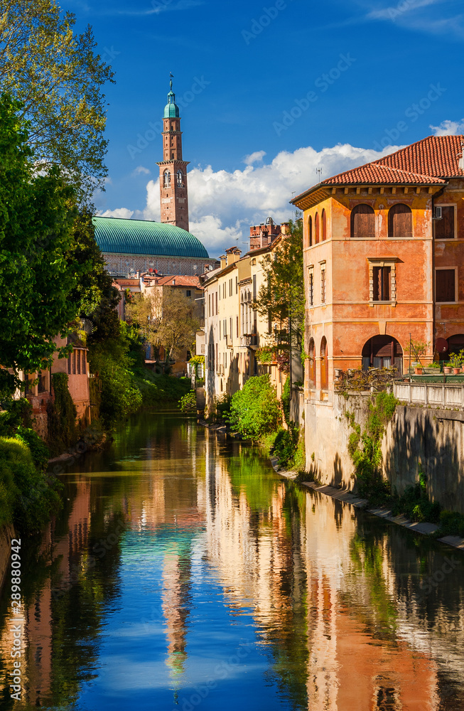 Tableau sur toile Wonderful renaissance Basilica Palladiana seen from River Retrone with reflectio