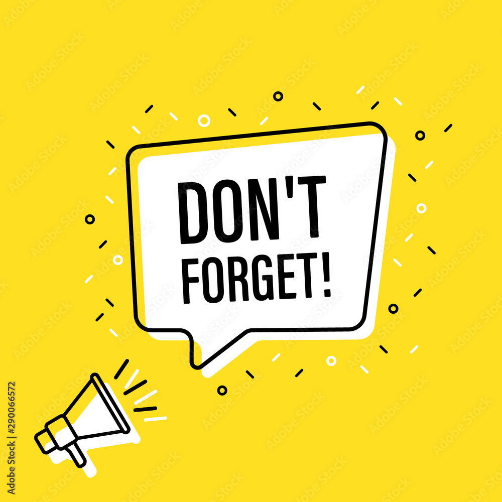 Tableau sur toile Male hand holding megaphone with don't forget speech bubble