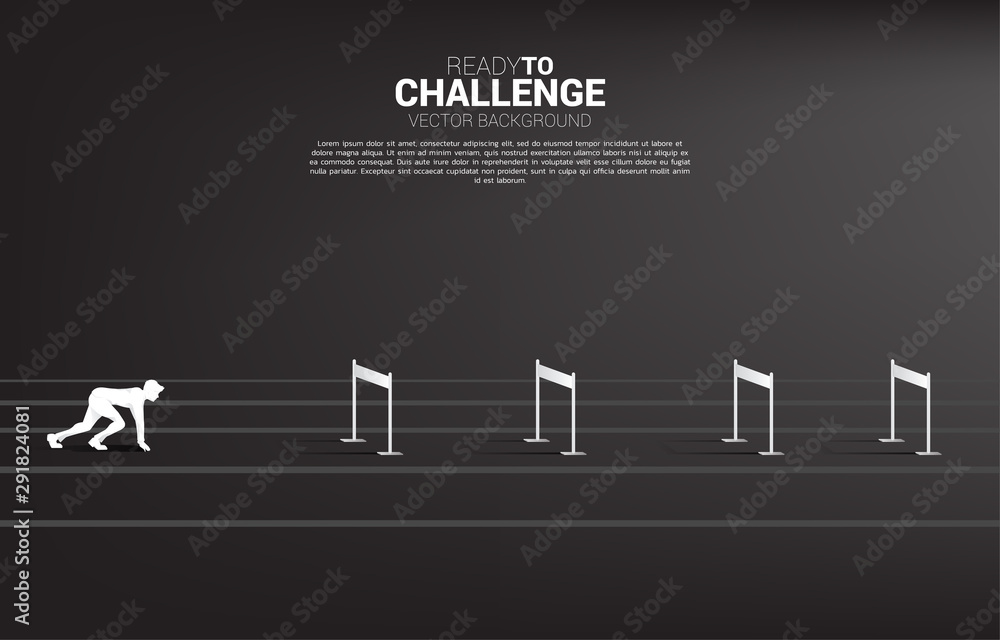 Tableau sur toile Silhouette businessman ready to run across hurdles obstacle