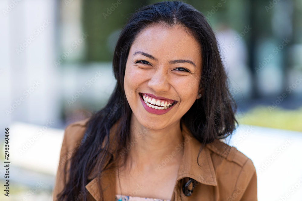Tableau sur toile Portrait of beautiful young woman in urban area