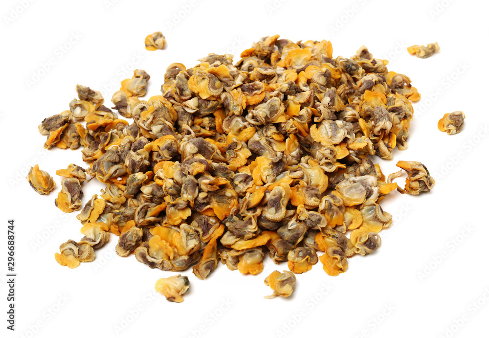 Tableau sur toile Fresh boiled cockle meat on white background