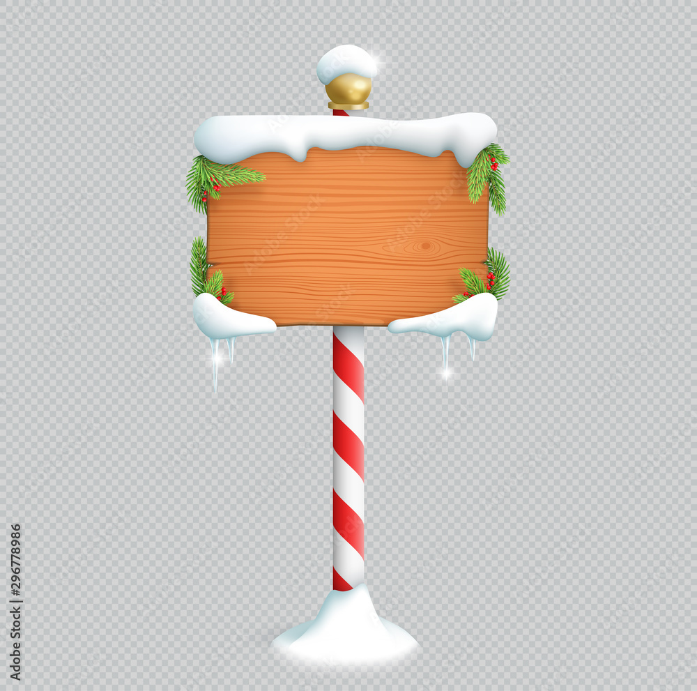 Tableau sur toile Christmas Wooden Sign Blank With 3d Snow Vector