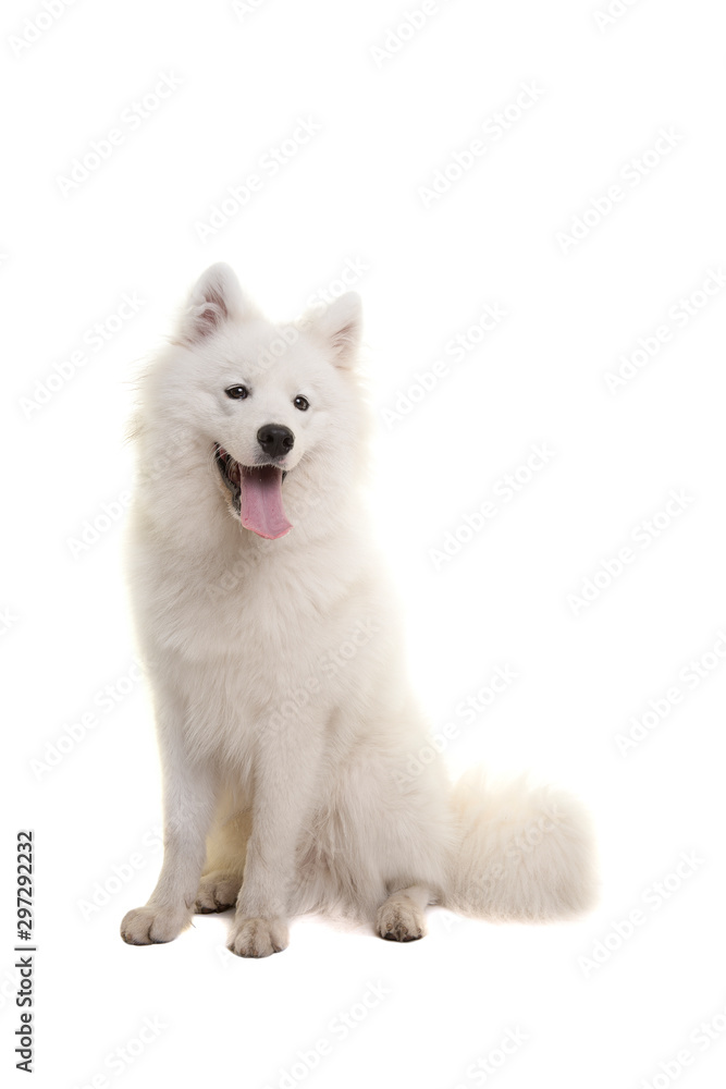 Tableau sur toile White samoyed dog sitting with mouth open isolated on a white background