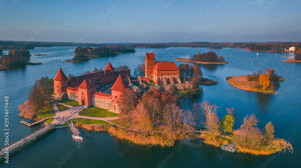 Tableau sur toile Beautiful drone landscape image of Trakai castle