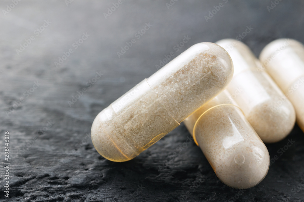 Tableau sur toile White medical capsules of glucosamine chondroitin, healthy supplement pills on d