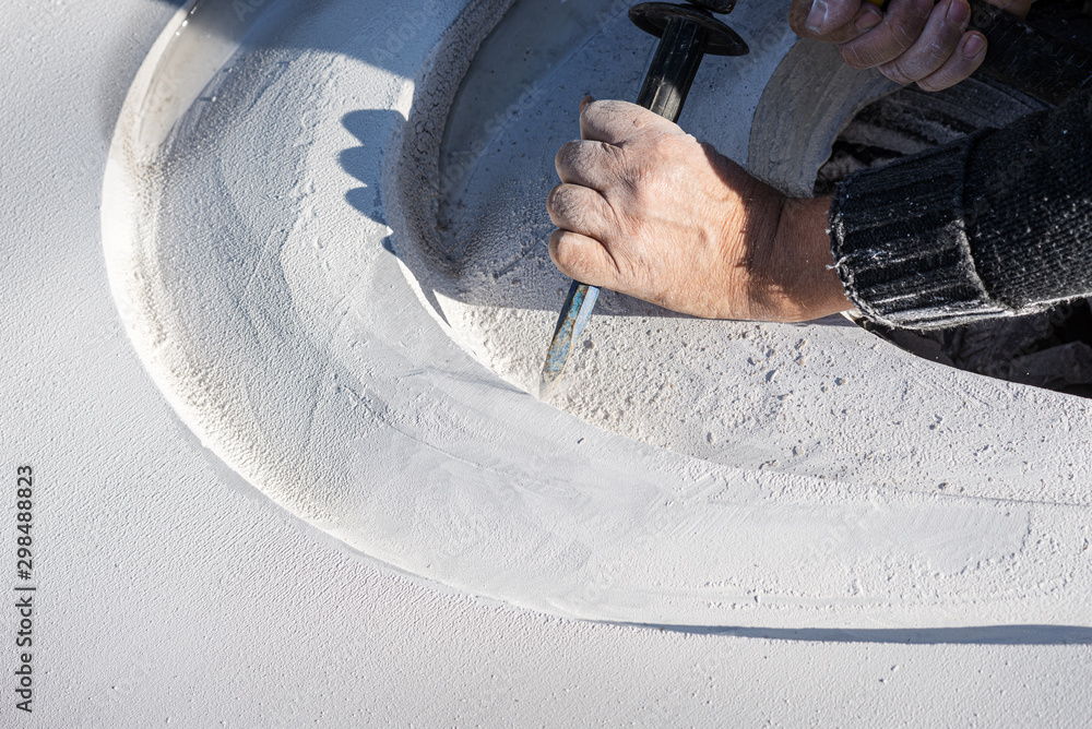 Tableau sur toile Closeup of an artist carving curves into a white stone