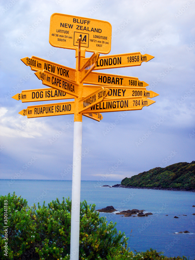 Tableau sur toile New Zealand, South Island, Southland, Bluff, Stirling Point, signpost marking th