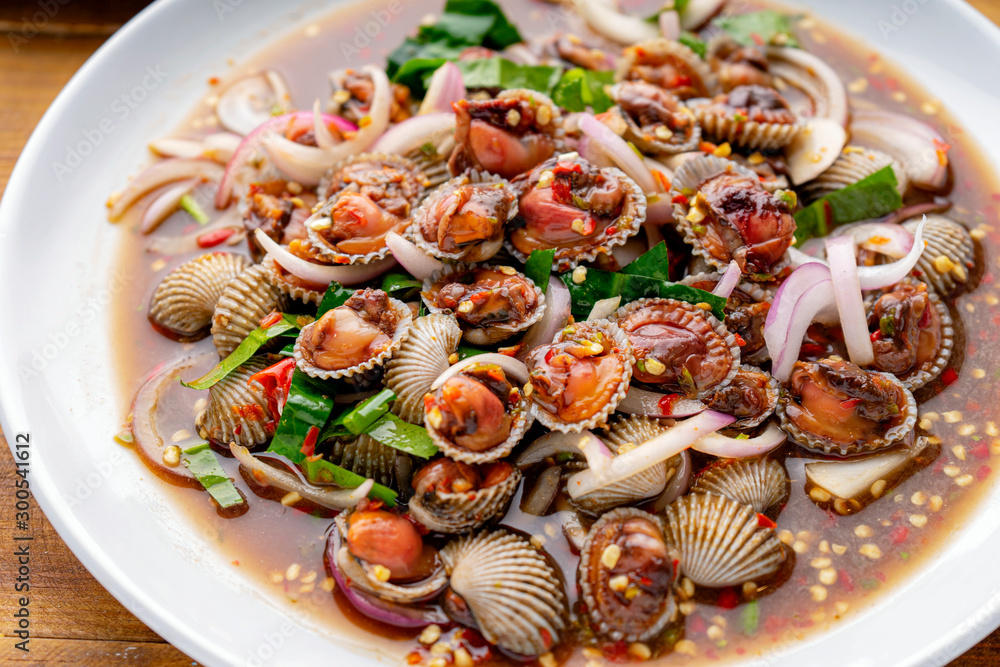 Tableau sur toile Cockle Salad,Cockles salad / Hot and spicy shellfish blood cockles salad mix veg