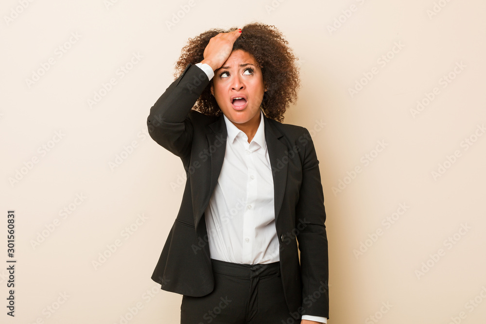 Tableau sur toile Young business african american woman being shocked, she has remembered important meeting