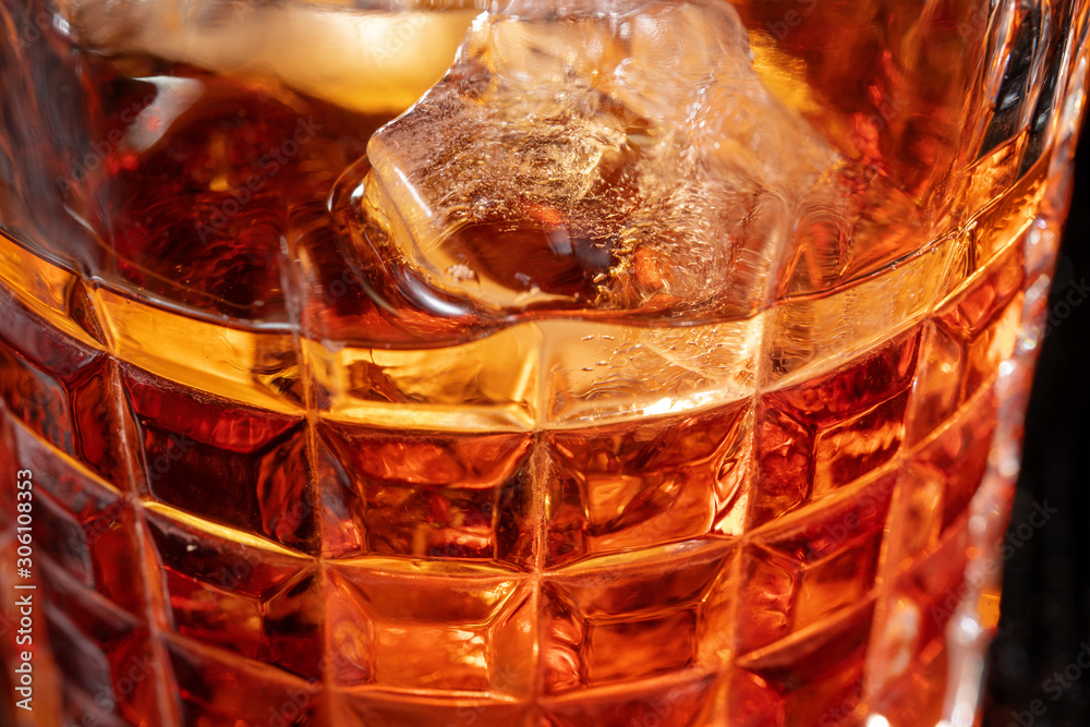 Tableau sur toile Classic Negroni cocktail isolated on black background.