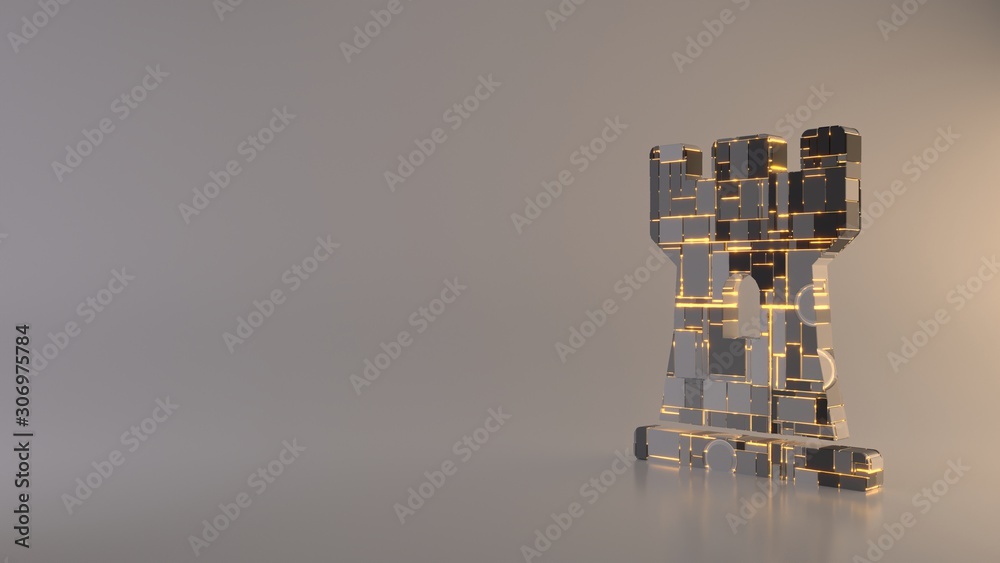 Tableau sur toile light background 3d rendering symbol of chess rook icon