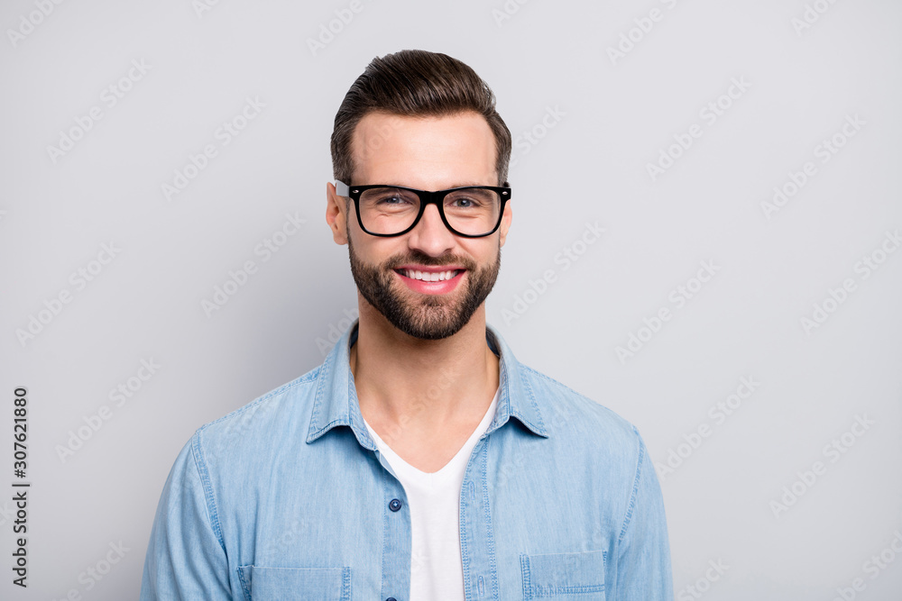 Tableau sur toile Closeup photo of amazing friendly business guy perfect neat appearance hairstyle