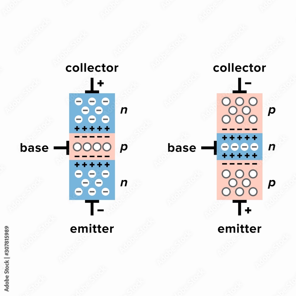 Tableau sur toile Operation principle of n-p-n and p-n-p bipolar junction transistors