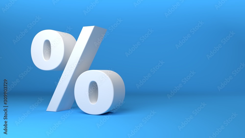 White percentage icon 3D on blue background 3d illustration