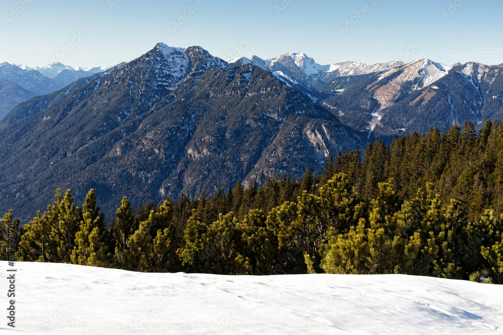 Tableau sur toile Blick vom Wank auf den Kramer bei Garmisch-Partenkirchen, Alpen, Bayern
