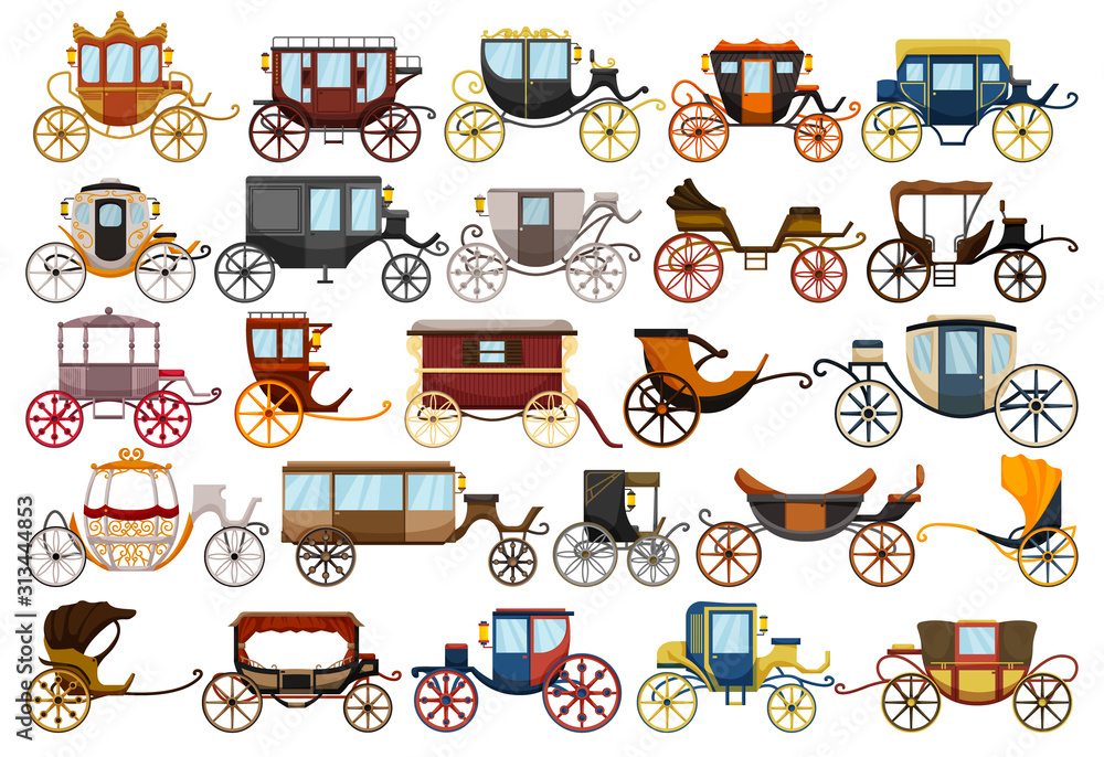 Tableau sur toile Vintage carriage vector cartoon set icon