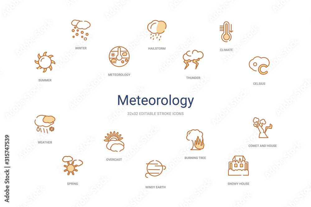Tableau sur toile meteorology concept 14 colorful outline icons