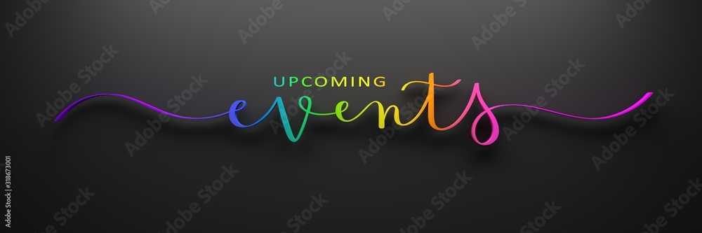 Tableau sur toile 3D render of rainbow-colored brush calligraphy UPCOMING EVENTS on dark backgroun