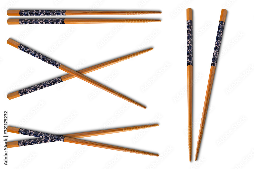 Tableau sur toile Collection of wooden chopsticks isolated on white background