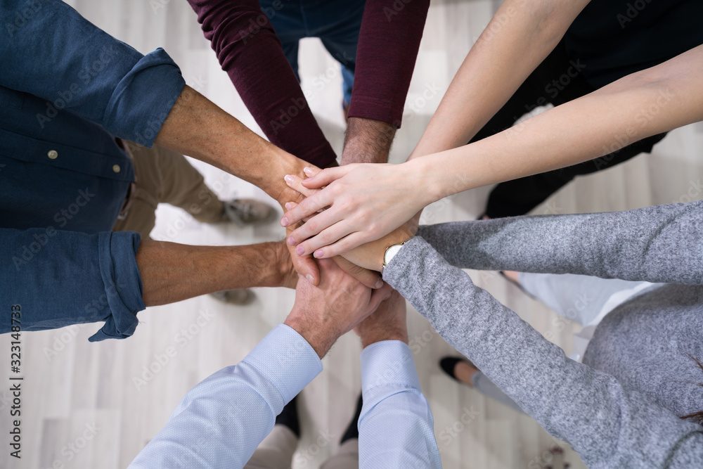 Tableau sur toile Stacked Hands Symbolizing Team Effort