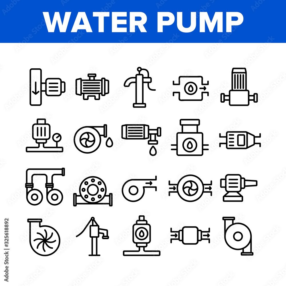 Tableau sur toile Water Pump Equipment Collection Icons Set Vector
