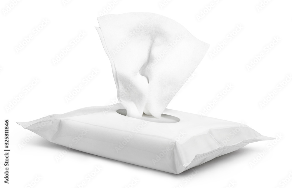 Tableau sur toile Open wet wipes flow pack, isolated on white background