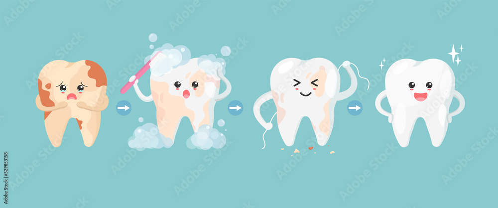 Tableau sur toile Cute tooth characters in flat style