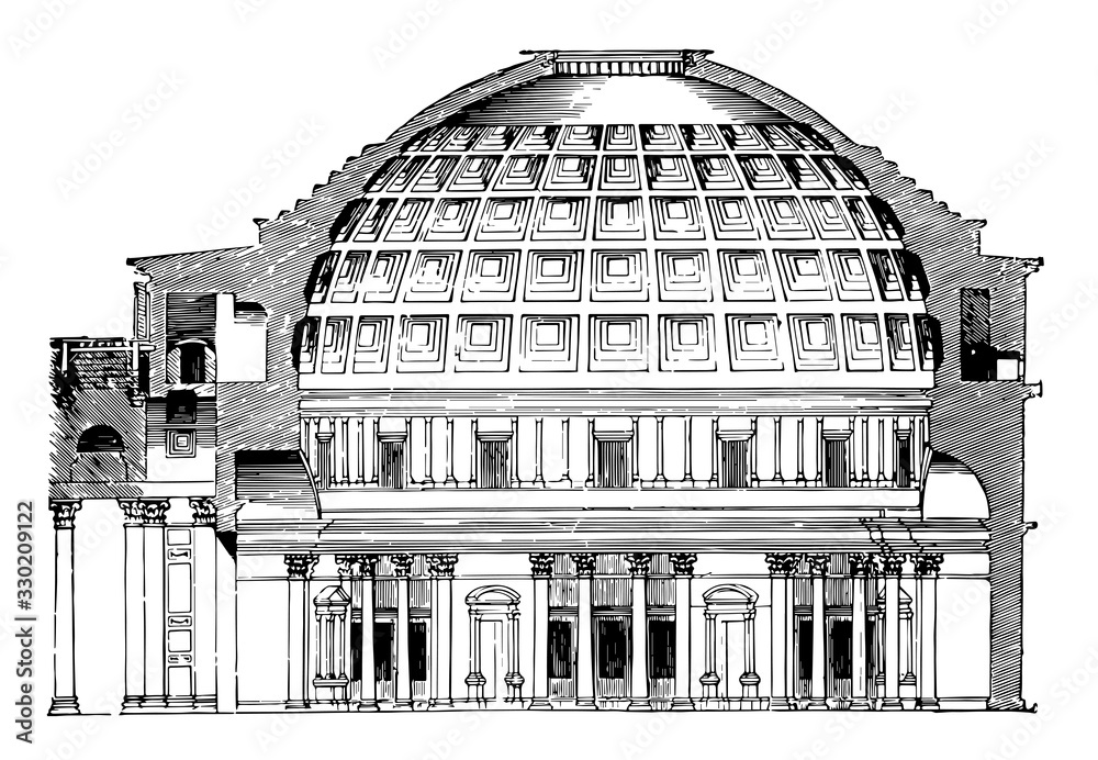 Tableau sur toile Pantheon, finest monument of this time is the Pantheon, vintage engraving