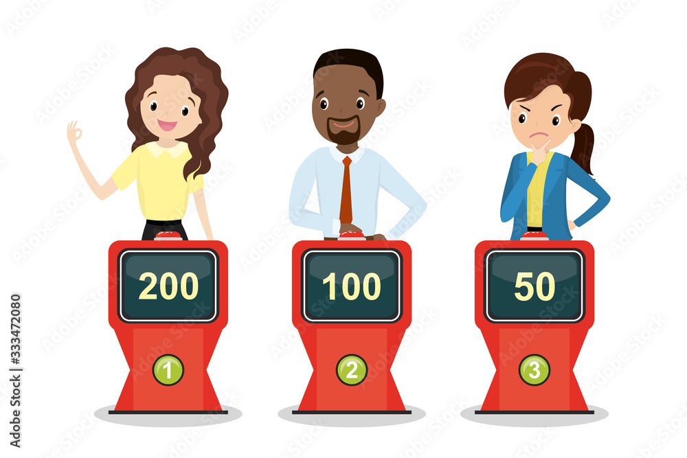 Tableau sur toile Cartoon young people guessing quiz questions,intellectual game show,