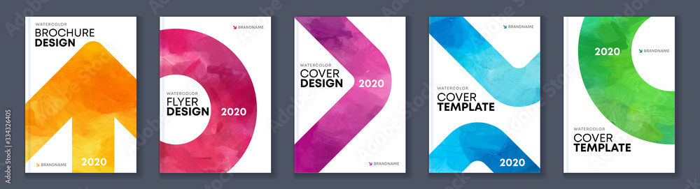 Tableau sur toile Watercolor A4 booklet colourful cover bundle set