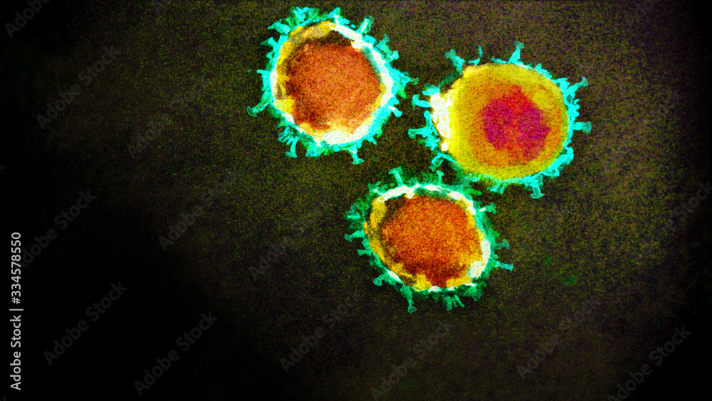 Tableau sur toile illustration of an electron micrograph screen Coronavirus mutant of the corona c