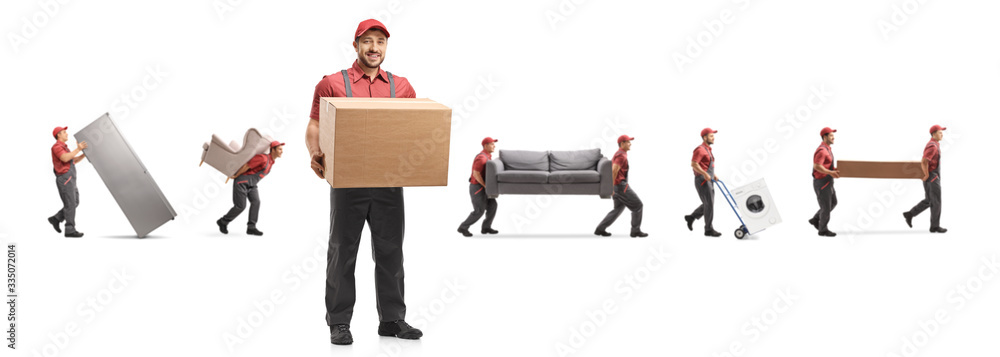 Tableau sur toile Worker from a removal company carrying home appliences and furniture