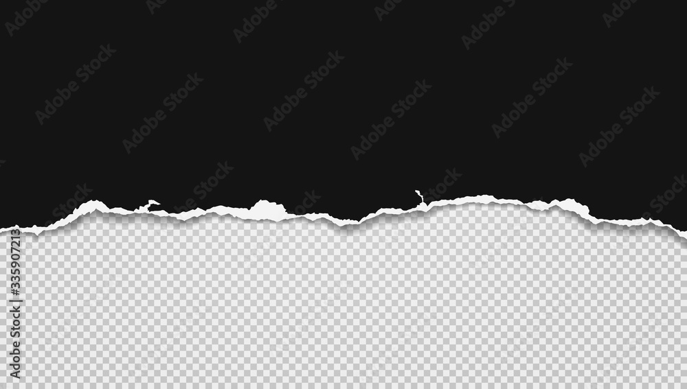 Tableau sur toile Piece of torn black horizontal paper with soft shadow stuck on white squared background