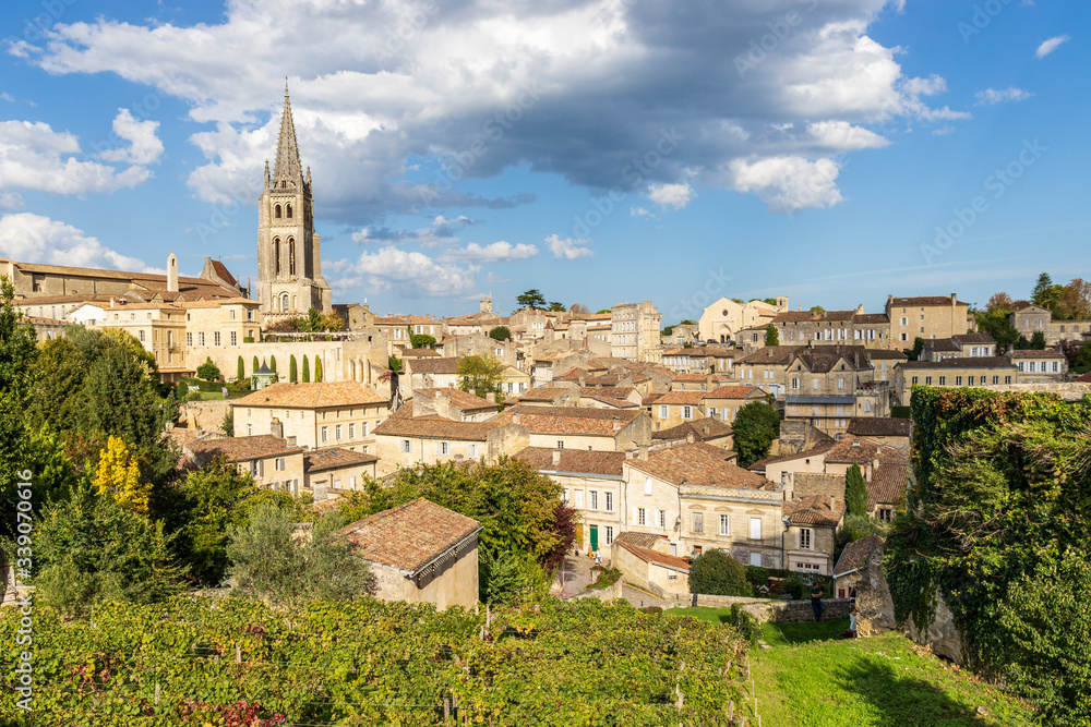 Tableau sur toile Saint-Émilion, classé Patrimoine Mondial de l'UNESCO, la cité médiévale, l'églis