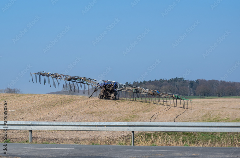 Tableau sur toile Modern slurry hosing, agricultural vehicle is distributing liquid manure through