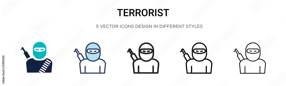 Tableau sur toile Terrorist icon in filled, thin line, outline and stroke style