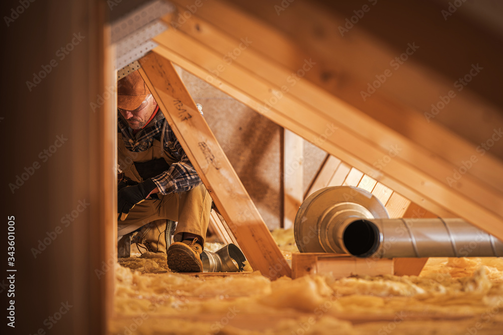Tableau sur toile Air Ventilation Installer Working in Attic