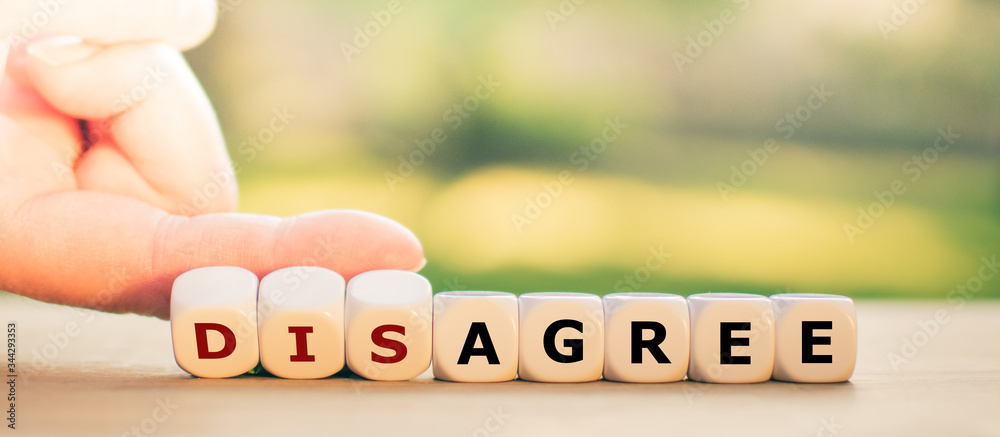 Tableau sur toile Hand turns dice and changes the expression disagree to agree.