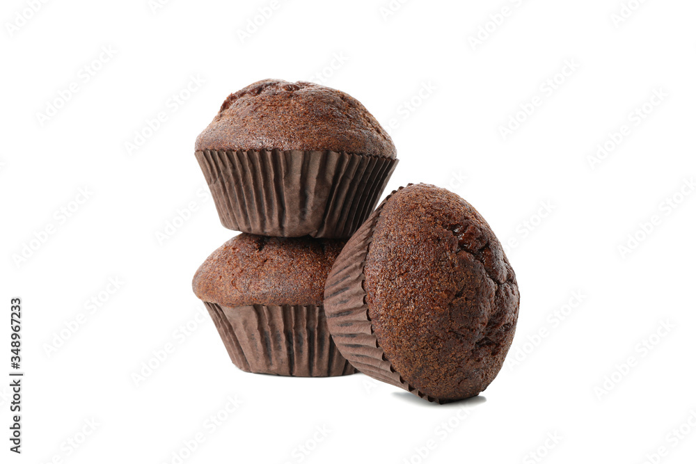Tableau sur toile Delicious chocolate muffins isolated on white background