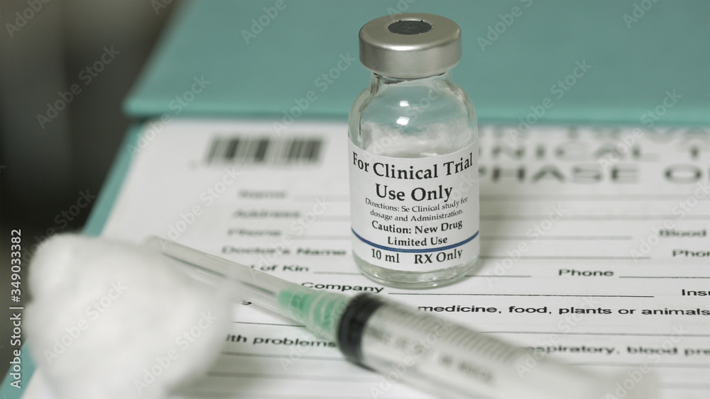 Tableau sur toile Clinical trial medicine, for the covid-19 coronavirus, on clipboard