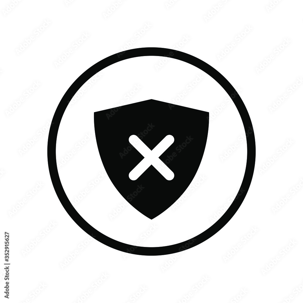 Tableau sur toile Single round black shield insecure with cross mark icon, simple undefended alarm